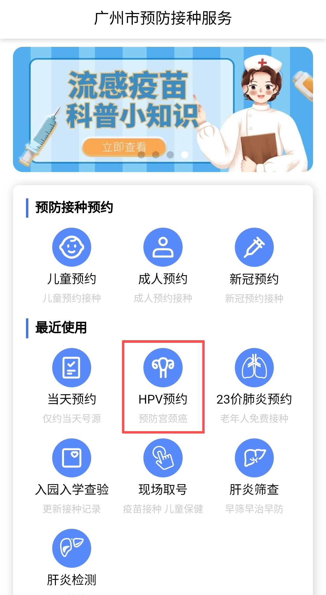 3.点击“HPV预约”即可预约。